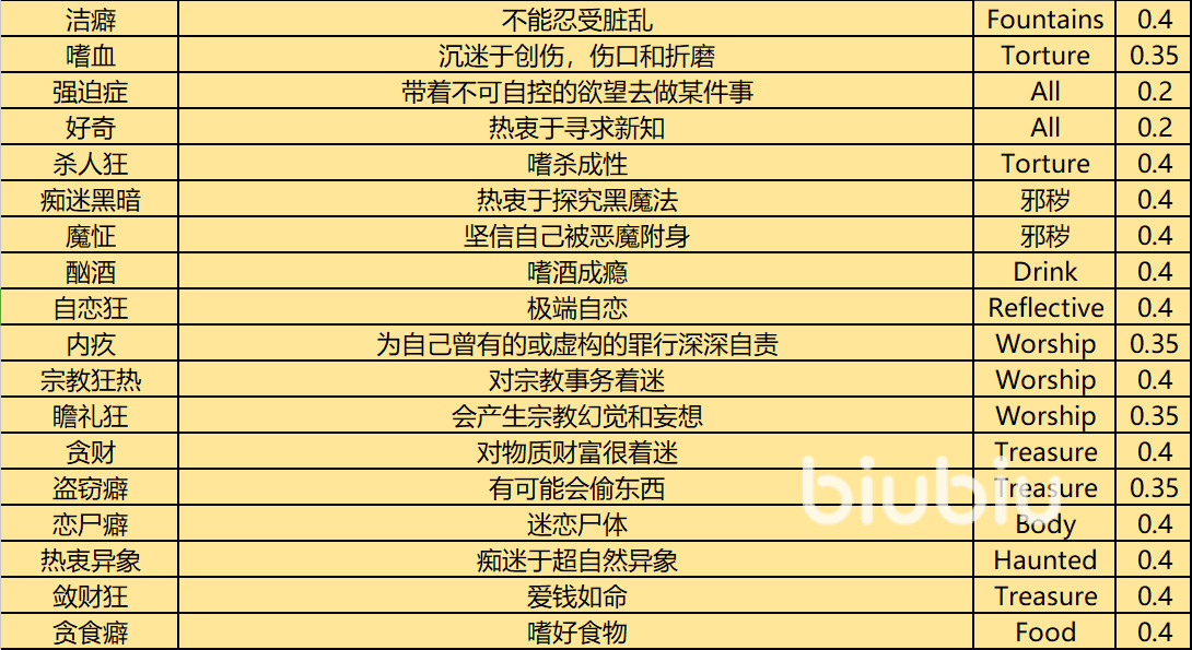 正面特质可以在小镇的疗养院里被锁定,以防止被替换。