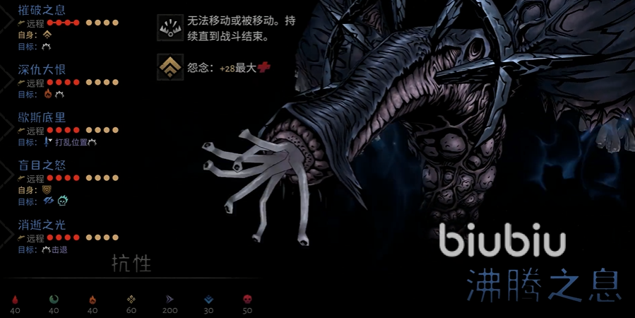 总之,暗黑地牢2肺龙机制就全部讲解完了,这些新技能均受嘲讽影响,但盲目之怒(给予2层致盲)和消逝之光(攻击破绽加压力)不会变为双击。肺龙在战斗中会随机使用这四个技能,玩家需根据战场情况灵活应对。