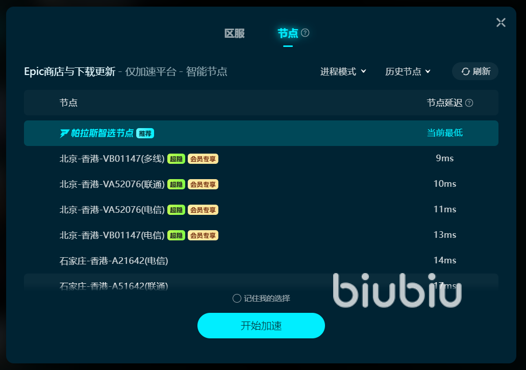 总之,选择正确的加速器节点对于游戏至关重要。而biubiu不仅能够根据你的地理位置和网络环境智能推荐最佳节点,还拥有丰富的国内节点资源和便捷的节点切换功能。快来试试吧,相信它一定能够成为你征服延迟的得力助手!