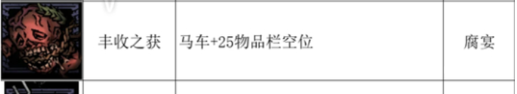 在乱冢,我们可以得到将军之梦,对尸体怪物造成200%的伤害,而梦魇尽头,是可以降低75%的饰品价格。来到腐宴之后,我们可以得到丰收之获,马车增加25的物品栏空位。