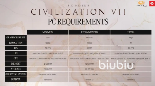 以上是为大家介绍的就是文明7最低配置玩家如果能够满足这一些配置,在体验游戏时就没有太多的问题,可以保证游戏的顺畅。而这一款游戏各方面的表现都很精彩,喜欢这款游戏的朋友就可以等待一下,很快就会和大家见面。