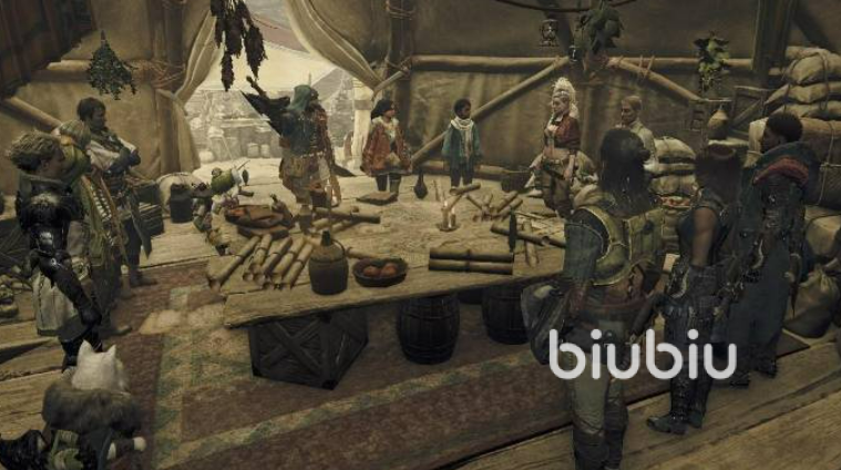 在荒野中,任务系统发生了显著变化,不再是传统的“接任务、出村、狩猎”这一固定模式,而是融入了更多流动性与自由度。与NPC的对话成为了接任务的主要方式,玩家可以在战斗中随时启动狩猎任务,甚至直接在地图上选择目标进行战斗。任务的开始不再局限于单一的地点和流程,任何时候遇到大型怪物都能立刻进行挑战,让游戏的节奏更具连贯性与活力。此外,新的“简易营地”系统让玩家能够在地图上自由搭建补给站,进行道具补充、装备更换,甚至在狩猎中途提供快速旅行的便利,极大提升了游戏的流畅感与自由度。