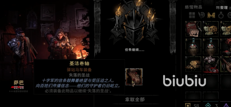 圣洁卷轴的力量:返回旅馆,利用马车匠的服务,打开圣物匣,从中取出“圣洁卷轴”。将这份神圣的物品装备到你的马车上。
