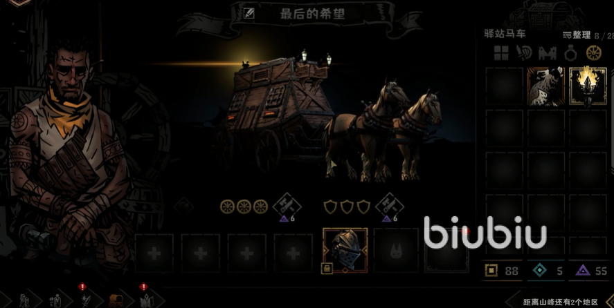 起始装备获取:首先,在旅馆内寻找并拿取“磨损头盔”,随后将其挂置在你的马车上,作为旅途的起始装备。