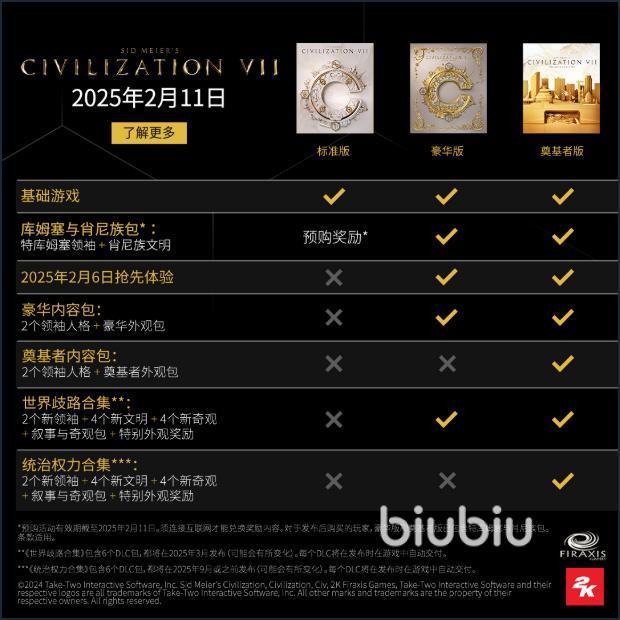 基础版本售价为298元,只包括游戏本体的体验,没有其他的福利。豪华版本除了基础游戏之外,还可以享受提前5天游玩,其中还会包括肖尼人文明,还有领袖库特姆赛等等。