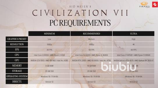 文明7电脑配置要求是什么 文明7电脑配置要求一览
