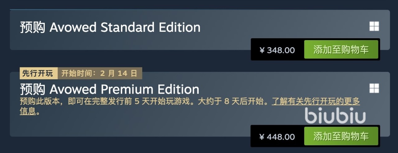 Xbox官方近日揭晓了黑曜石工作室打造的全新动作角色扮演宣誓的预购预告片,并宣布该游戏现已全面开放预购,定于2025年2月19日正式登陆XSX|S及PC平台。游戏发布首日即加入XGP服务,并配备中文支持。在Steam国区,标准版定价为348元人民币,而高级版则为448元人民币,选择购买高级版的玩家将能提前5天畅享游戏内容。也就是说,如果预购高级版就可以2月14日开玩了。