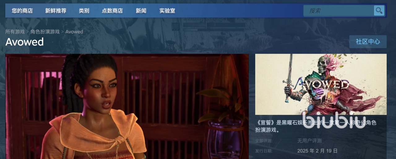 宣誓在Steam上的英文名叫《Avowed》,是由黑曜石开发的一款第一人称奇幻角色扮演游戏,大家在搜索框输入它就可以很快找到。