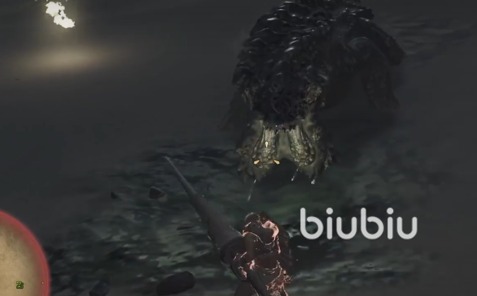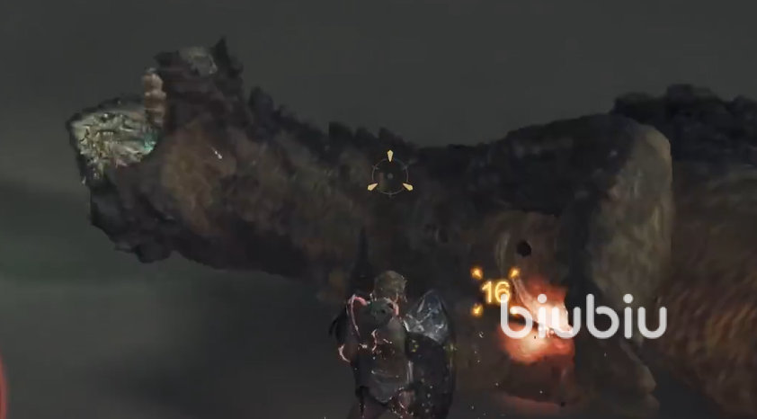 对于沙海龙来说,最常用的两招就是它的二连扫尾和铁山靠。乍一看这两招,感觉似乎没什么技术含量,实际上它们的威胁不小。二连扫尾这一招看似简单,但沙海龙的身形挺大,站在它正面时你会被推着走,这时候的最大问题是如何避免被推到死角。所以,站在它的侧面或者头后部,就能绕过这一招的推人效果,安安全全地享受攻击机会。
