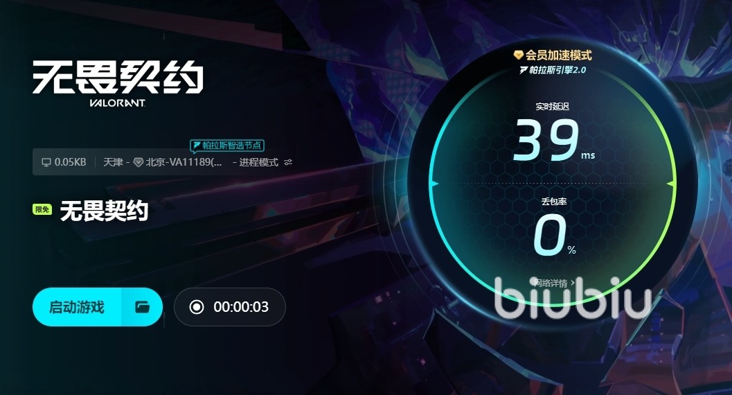 在无畏契约游戏中,玩家们是能看到不同职业的英雄角色,我们可以组建强大的战队,而且每一个角色的实力差距也是比较大的,我们必须掌握其技能特点,这样才能快速的进行输出。而且为了保证玩家的新鲜感,游戏每隔一段时间都会进行更新,里面会上线更多的英雄还有武器,带给大家更沉浸式的体验,至于小伙伴们反馈在体验过程中出现闪退的问题,那么我们就需要从两方面考虑,首先就是需要检验一下游戏的完整性,如果大家确保自己的游戏文件没有缺失的话,那么就要考虑第二种问题了,是不是网络不够优质所导致的,毕竟像这种海外服的游戏,我们在体验过程中肯定是会存在地区方面的限制,网络不稳定也是时有发生,遇到这种情况,想要解决也比较简单,玩家们可以直接点击上面链接下载biubiu加速器,它是一个热度很高的加速软件,能够为我们提供更好的加速帮助。
