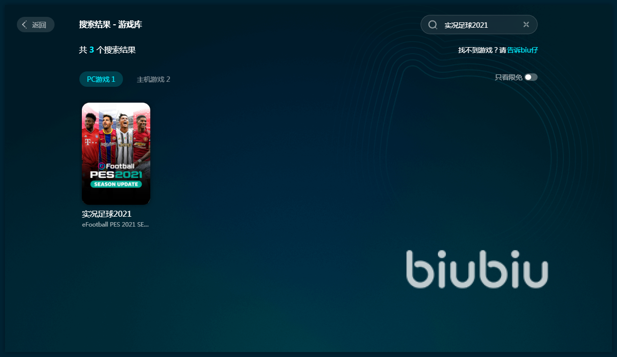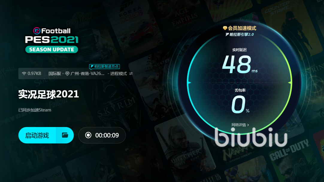 小编推荐给大家解决闪退问题的工具就是biubiu加速器,这款加速工具已经运行了很长时间,并且在运营过程中,不断对自身的技术和操作方式进行更新,现在已经实现了帕拉斯引擎2.0一键优化设计,将很多自身加速科技都集中在一款引擎中,这样大家只需要很少操作就能进行一键优化,快速达到目的。目前为了让更多用户能够体验到biubiu的效果,还推出了免费试用的诸多活动。例如新注册账号直接得三小时会员时间,每个号都能通过兑换码【biubiu不卡顿】兑换三天会员时间等。之后只需要将实况足球2021输入进biubiu中,直接查看到对应的游戏选项,然后点击进行加速就可以了。