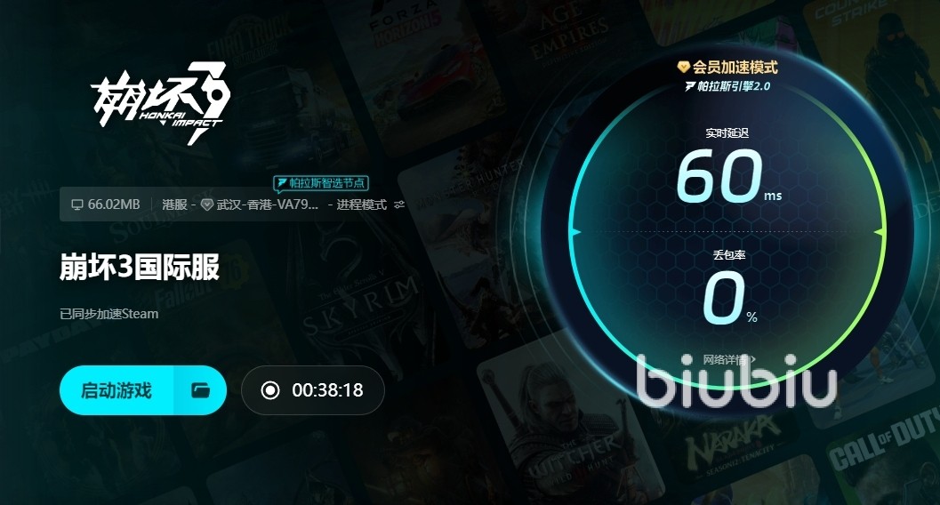 biubiu也不同于其他平台拥有那么多花里胡哨的操作步骤,它的整体界面简单明了,直接首页搜索崩坏3国际服就能找到相应的游戏版本,然后我们直接开启加速就可以了。进入详情界面,大家还能实时掌握到当前的加速状态,会同步加速steam平台。后期玩家们可以用于更新、下载或者是体验其他游戏都是可以的。biubiu还会拥有专属社区,这也是为大家提供的社交平台。在这里我们能够与其他大佬互相分享游戏心得,让我们更快的掌握游戏技巧,使自己的游戏之路变得更加顺利。