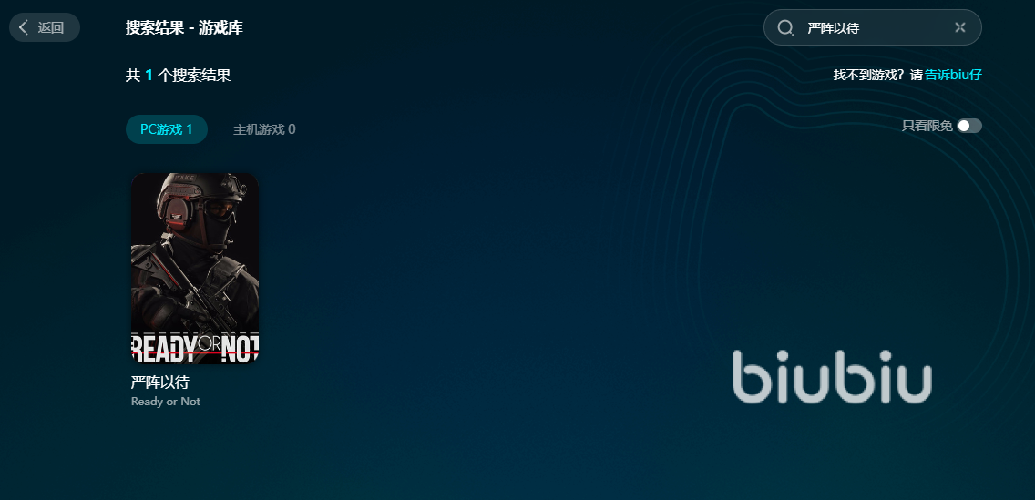 biubiu的游戏库超级大的,当然也是收录了它的。大家搜索完之后,是可以看到有结果的,biubiu还贴心的用pc端跟主机端进行了分类安放,这样大家查找起来就更快速了。要是长期使用主机端,喜欢用这个方式,biubiu这里也能找到的,大家进行简单的网络配置就行了,教程都已经准备好了。