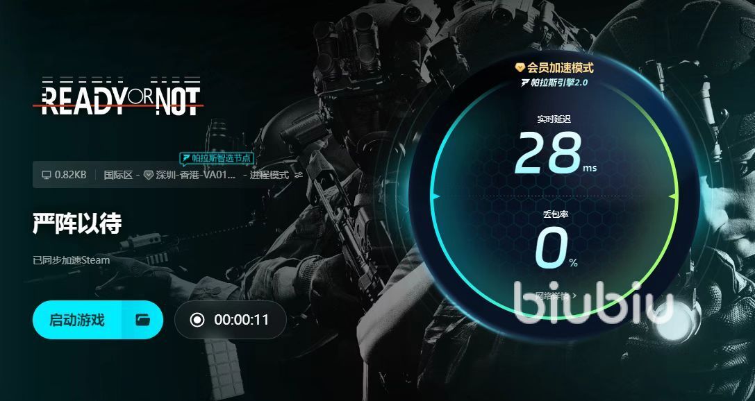 加速效果大家放心,面板并没虚标,全是真实数据,可以看到延迟是低了不少的。大家要是仔细观察,点进去观看网路详情,是可以看到整个丢包率一直是稳定的状态,代表这次优化出来的线路,是又快又稳定,不管参加多少人的团战玩法,都不会因为抢不过人家的网络占比,就晚链接到服务器,全程我们都是在公平的状态下跟敌人进行战斗。