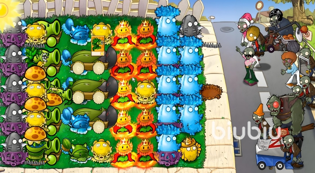 虽然说游戏的名字听上去略显古怪,但是游戏中滑稽搞怪的背景音效,再加上各个形态各异的僵尸形态,从某种角度来说这个游戏氛围还是很轻松的,不过想要成功击退这些不断前进的僵尸,需要有规律的在有限的地快上摆放合适的攻击道具,当然太阳的数量也很重要,可谓是大战僵尸过程中的每一秒都很重要。想要游戏过程足够丝滑的话,BIUBIU的加速效果很重要。