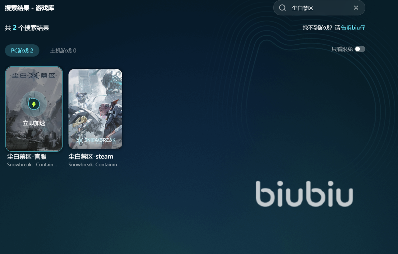 独家推出了长期免费专区,为包括大部分国内端游和主机游戏在内的多款游戏提供免费加速服务。尘白禁区闪退怎么办,就跟大家聊到这吧,如果你也遇到了尘白禁区PC端闪退的问题,不妨尝试一下biubiu加速器,相信它一定会给你带来意想不到的收获。