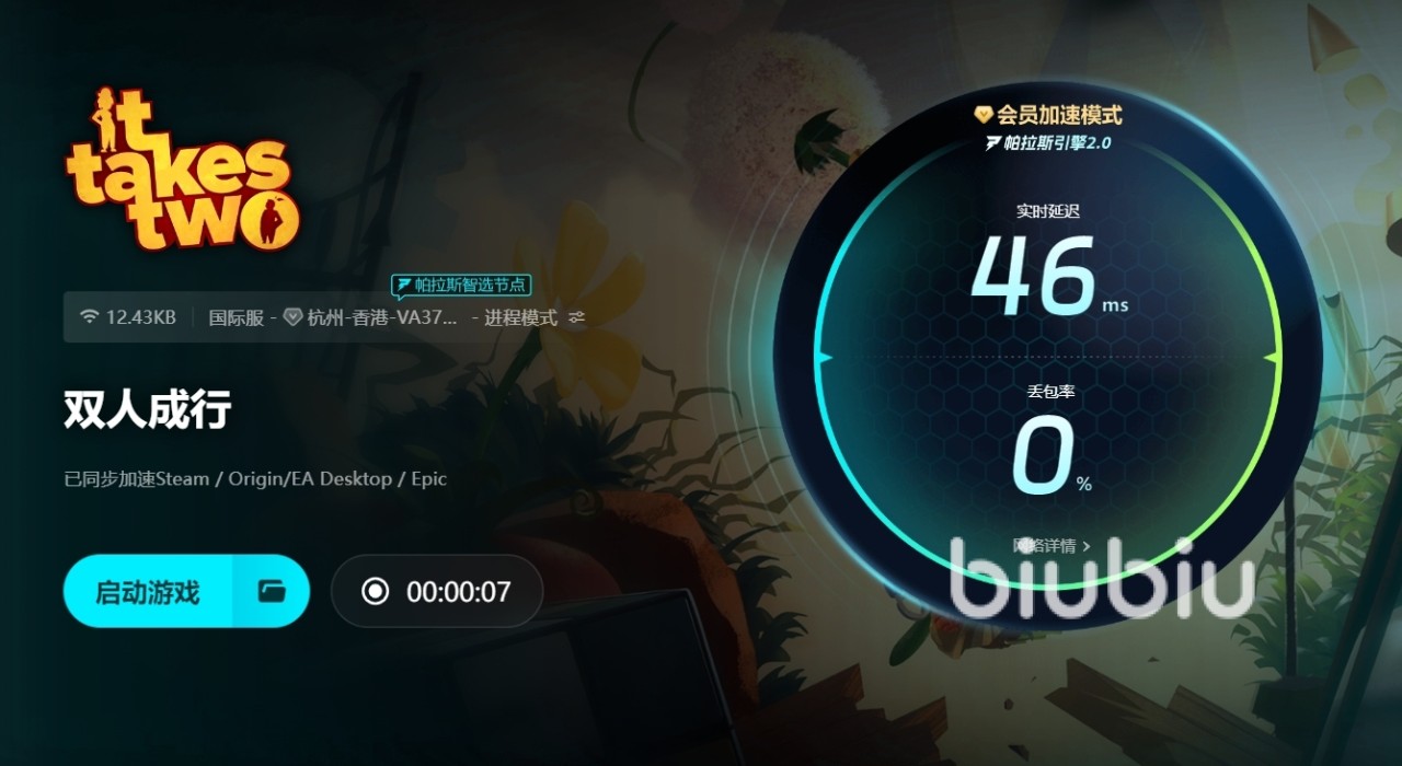 上述就是双人成行掉帧怎么解决的方式方法,画面中出现了掉帧的现象就是当下网络环境的延迟数据过高(也就是说超过了80ms),启动biubiu加速的话,它的加速模式能让玩家的延迟数据保持在较好的数值左右,也就不太会出现画面掉帧的现象。