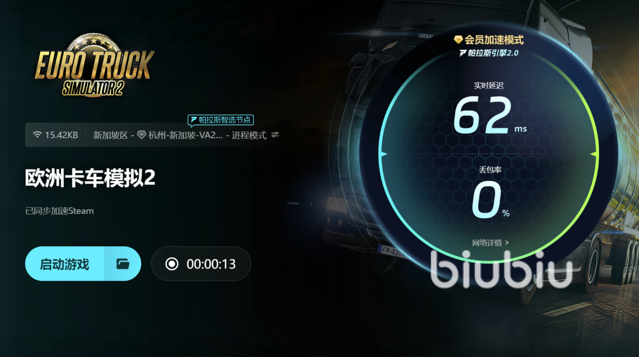 2025年02月08日 11:14 来源:白银至漩涡鸣人欧洲卡车模拟器2闪退怎么办?逼真的驾驶模式是吸引玩家的核心玩法,自从游戏上线一以来,就深受超多玩家的追捧和喜爱,精细的物理模式操控搭配广阔的地图,让玩家们可以尽情的探索,多样爱的架势挑战让大家可以沉浸式的体验游戏所带来的种种挑战,但是这个过程中总是遇到很多的网络问题干扰着大家,影响了游戏进度同时也降低了大家队友的好感度,所以针对这个问题提供提供最好的解决方案就是搭配好用的加速工具,而biubiu成为了大家的首要选项。