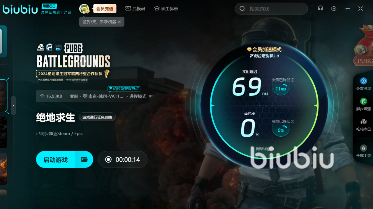 绝地求生是战术竞技游戏,策略与枪法一样关键,需要在岛上寻找武器、装备以及资源配置等,与自己的其余对手进行生死搏斗,而后面活下来的个人或队伍即为胜者。 这种设定不仅考验玩家的战斗技巧,更考验他们的生存智慧和策略。需要你随时做出判断,取得更多的时间,其中考验的是大家的运行速度如何,有卡闪情况就不好了,小编所想的biubiu可以解决此现象,因为在分秒间的对决当中,确实需要个平稳的网在支撑整场游戏,进而赢取大吉大利。