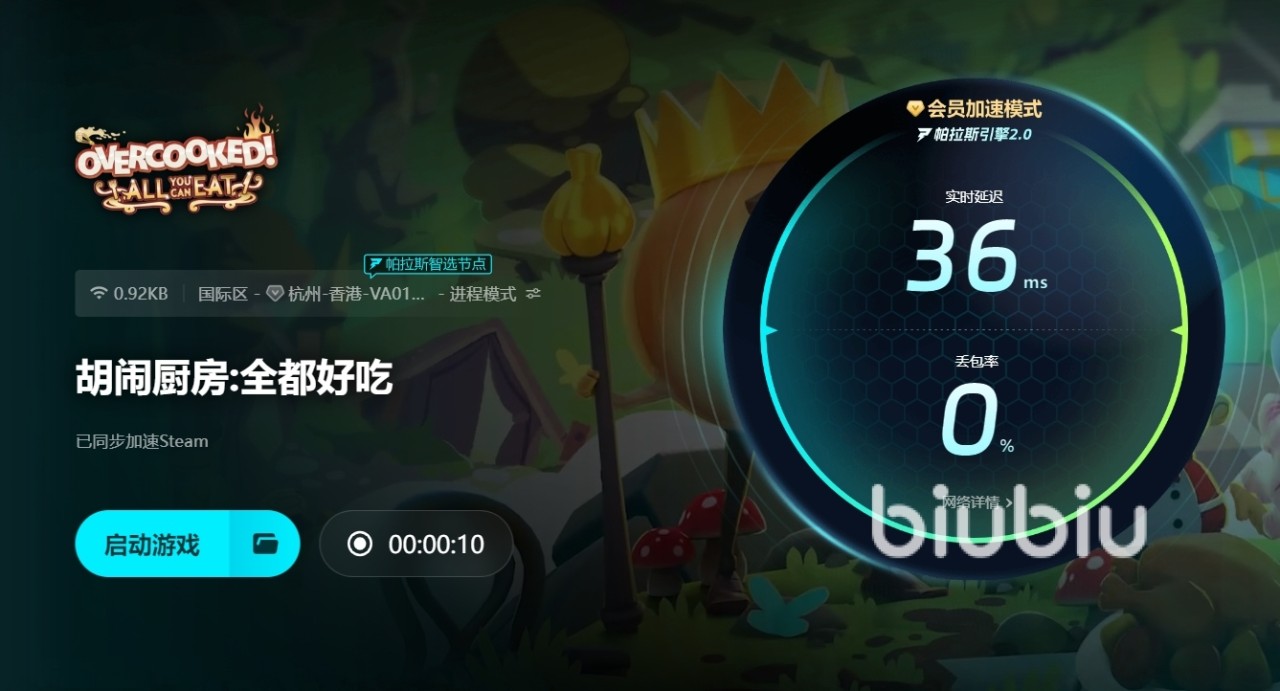 以上就是玩胡闹厨房要开加速器吗的解析内容,这款游戏中玩家们需要在规定时间内尽可能多的完成客人的点单,在完成过程中更是需要玩家之间有好的默契,想让时间安排的更加合理,可以利用下biubiu加速器的加速,能让玩家之间的沟通更加顺畅,同时在配合上也能更加默契。