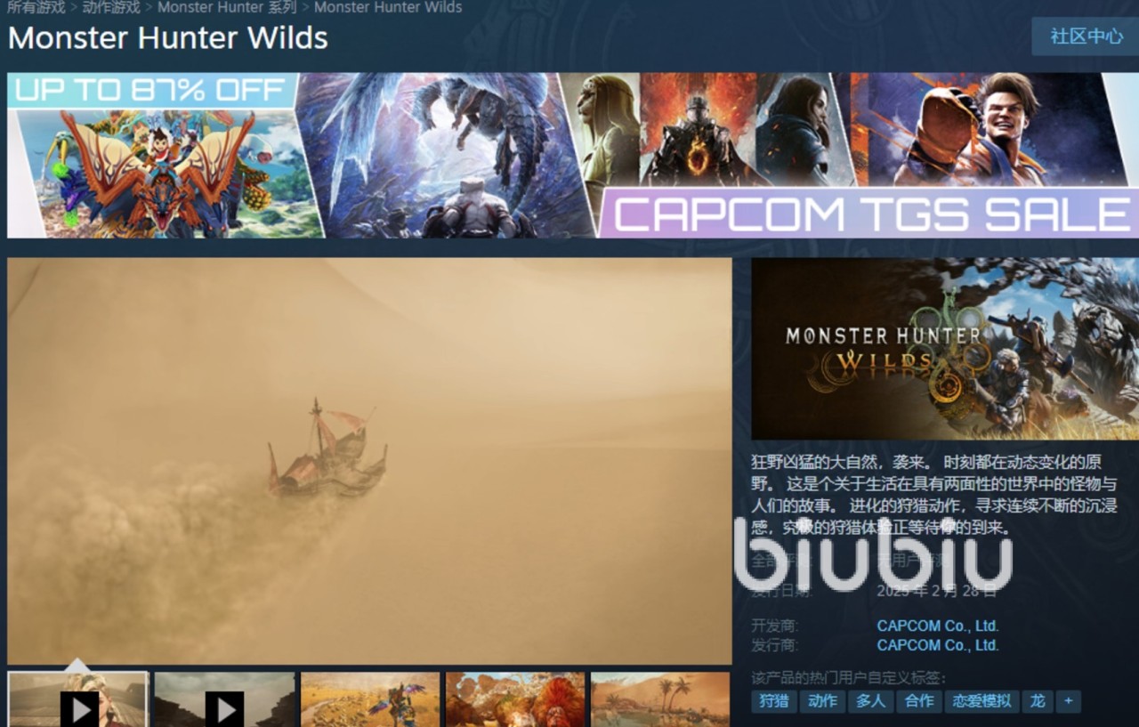 游戏的英文名称叫做:Monster Hunter Wilds,只要在steam商店搜索框输入这个名称就可以轻松找到,而且现在正在进行二测,大家可以根据自己的情况进行选择。