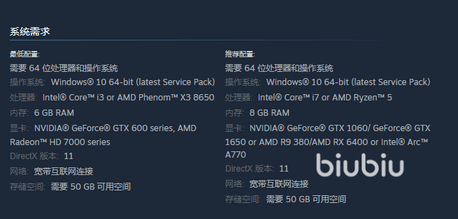 为了确保游戏能够流畅,需要关注自己的电脑是否满足要求。最低标准包括64位的Wins系统,I3或Phenom X3 A卡的CPU,GTX 600系列的N卡显卡,6GB的RAM以及50GB的硬盘空间。