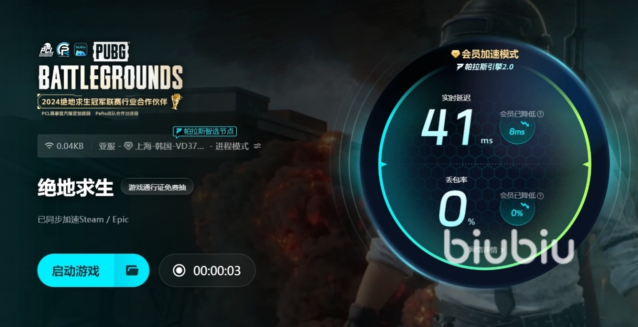 绝地求生这款吃鸡类的游戏能拥有这么多的玩家,这和游戏的玩法比较简单有非常大的关系,而且这个游戏属于随时随地都能来上一局的,不需要玩家对账号进行培养升级。不过就算玩家有足够准头的射击能力,也是需要好的网络来配合的,要不然说不定你在瞄准的时候已经被敌方玩家爆了头,及时发现敌方踪迹并进行射击才能让自己顺利进入最后的决赛圈。想要达到这样的效果,BIUBIU这款竞赛游戏级别的加速器足够应付。