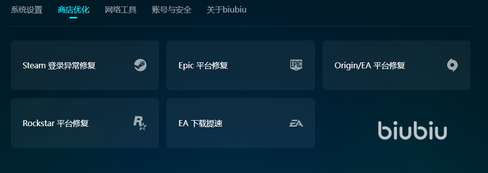 千万不要以为biubiu只有加速游戏这一个作用,它的功能可多了去了,当电脑网络出现故障的时候也可以用它来重置或者修复。它还兼备优化商店、提升游戏下载速度等多个用途,一个软件就包揽了大部分的游戏网络问题解决方法。软件的下载链接就在上方按钮当中,现在赶紧点击下载吧。