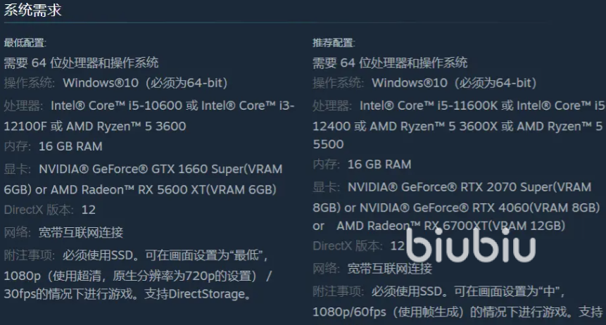 除了显卡之外,玩家还需要搭配Intel i5-11600K,处理器在内存上面尽可能是保证16GB,在满足这些要求之后,体验游戏自然就会比较顺畅。