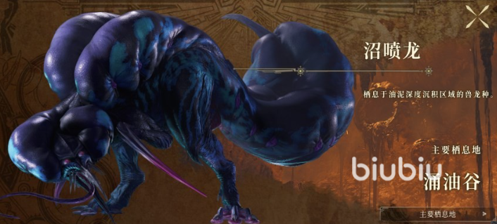 大家想要跟它交下手,可以去涌油谷探索一下,它是生活在油泥深度沉积区的兽龙种。