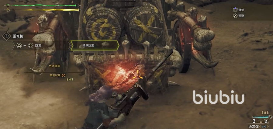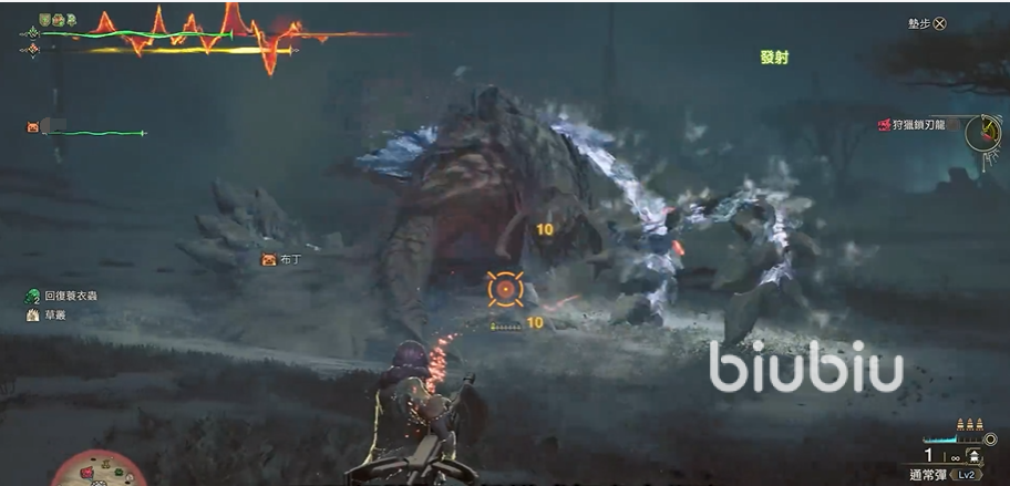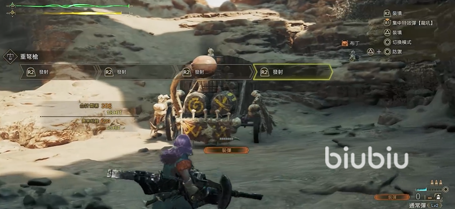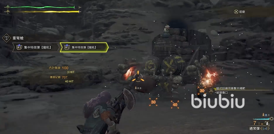 关于重弩枪的集中特效,其右下角龙热条上方会显示特殊子弹。当发现怪物伤口时,瞄准并按下R1键即可发射集中特效弹,造成额外伤害。在龙热模式下,集中特效弹的威力更为惊人。与其他武器相比,重弩枪的集中特效虽朴实无华,却异常实用。