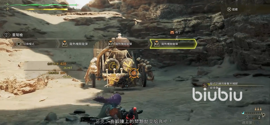 当能量条蓄满后,按下圆圈键即可切换至龙热模式,此时的重弩枪将焕发新生,二段射击化作连绵不绝的机关枪,伤害惊人且操作更为便捷。在龙热模式下,玩家可随时按下叉叉键进行闪避,随后无缝衔接机关枪输出,确保持续高效作战。此外,龙热模式下还有冷热抵消弹这一绝技,通过按下三角形键或长按蓄力发动,该技能可打断怪物攻击,但前摇较长,需精准把握时机。