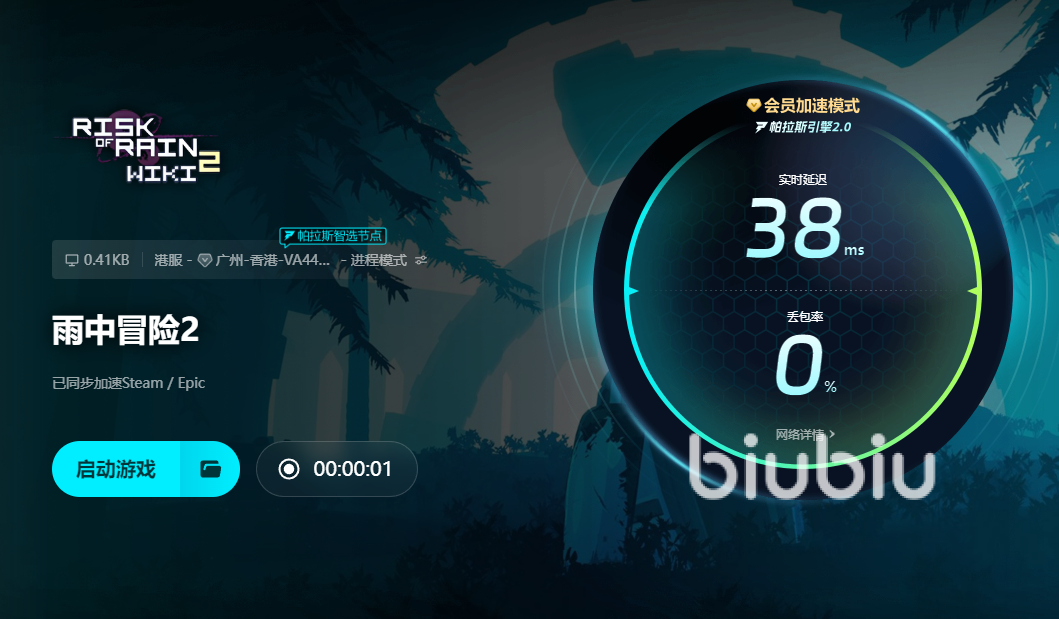 因为网络已经优化好了,所以我们现在的延迟数值很低,这样问题不就得到了有效的解决吗。而且biubiu的好处是不止这一个的,我们可以发现丢包率还很稳定,那大家长时间在线都是一个比较好的状态,不延迟也不闪退,跟好友一起玩是可以沉浸进去,参与多次战斗的。