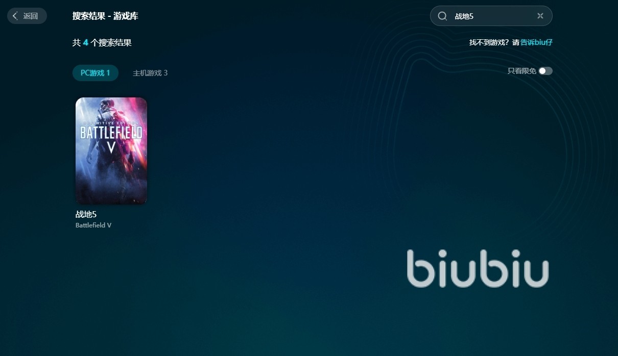 而且为了让大家更好的判断平台的实用性,现在所有的玩家都可以使用【biubiu不卡顿】这一兑换码去领取72小时的免费加速时长。如果是新用户,那么官方还会额外赠送3小时的加速福利,让大家最多拥有75小时的免费体验机会,有助于玩家更好的判断平台的实用性。在领取了福利之后,我们就可以直接在首页搜索战地5,找到相应的游戏完成加速处理了。
