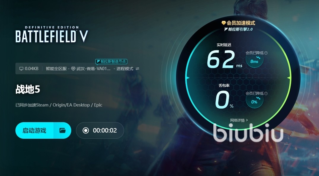 战地5与之前的同系列游戏相比,整体的画面做了进一步升级,将完美的还原历史二战战役,还拥有更经典的战斗内容,同时玩家也能享受到高清画质,仿佛置身其中一般,享受到真正硝烟的战争场景,而在游戏体验过程中,如果出现启动闪退的情况,玩家们就需要从两方面考虑问题。首先,大家需要了解自己的内存是否符合游戏运行需求,同时也要检验一下游戏的完整性,如果确认这两方面都没有问题,那么玩家就需要考虑是不是自己的网速不够优质,毕竟像这种多人在线类游戏,如果网速不好的话,那么就会出现卡顿,闪退等问题,这些都是不可避免的。小编建议大家直接使用biubiu来进行改善,点击上面的链接即可下载安装,它是一个专业级别的加速应用平台,能够为我们提供更优质的加速效果。