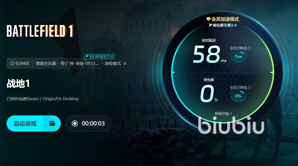 战地1是一款大型多人在线类游戏,最多是可以容纳64人玩家共同参与,每个队伍拥有32人,游戏的地图板块非常的大,我们可以在地图上使用不同的武器完成对战,载具也是比较丰富的,像坦克、飞机等等大家都是可以使用的,每一个武器都有极强的杀伤力了,玩家们一定要好好利用,而且在多人作战模式下,我们可以与队友互相沟通配合,只有相互成就才能更好的取得优良战绩,而在战斗过程中卡顿、延迟高也是会严重影响我们的游戏体验心情,遇到这一类的问题,玩家们就可以尝试用biubiu对游戏进行加速处理了。