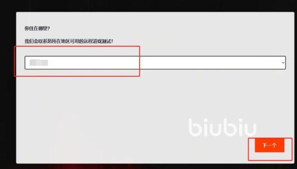 根据图片中的提示,我们将必填项目完成之后,最后还需要填写所处区域,选择欧美地区进入服务器会简单点,然后点击下一步,选择参与调查,也就是申请测试,最后显示感【谢我们完成调查,留意邮箱】就代表结束了。
