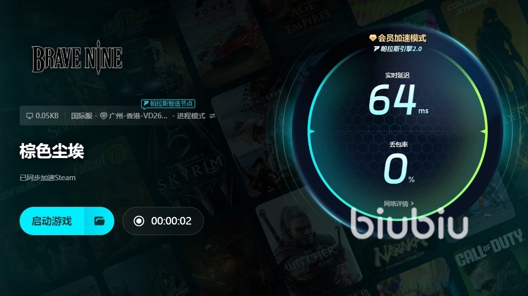 biubiu的操作也是比较简洁的,我们可以直接首页搜索棕色尘埃即可找到相应的游戏,选择自己体验的服务器就能快速完成加速了。在详情界面,大家还能实时追踪到当前的延迟和丢包数据,如果觉得网络波动过于大,大家也可以手动切换节点,拥有海量节点,小伙伴们都是可以自由选择的。可以说biubiu真的是非常实用的存在,尤其是对于各位新手,它还为我们提供专属攻略,进入其社区,我们是能够看到很多大佬们分享的游戏心得,让大家更快的成长。