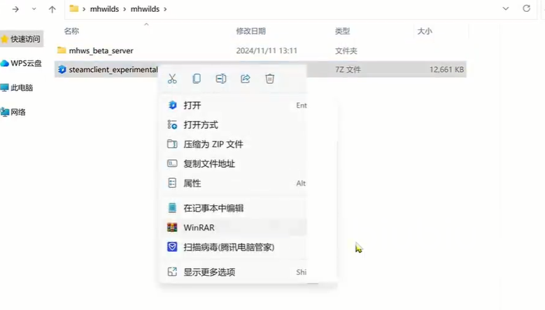 最后,将steamclient_experimental压缩包解压至《怪物猎人:荒野》游戏的根目录下,以确保游戏客户端能够使用实验性功能或修复。