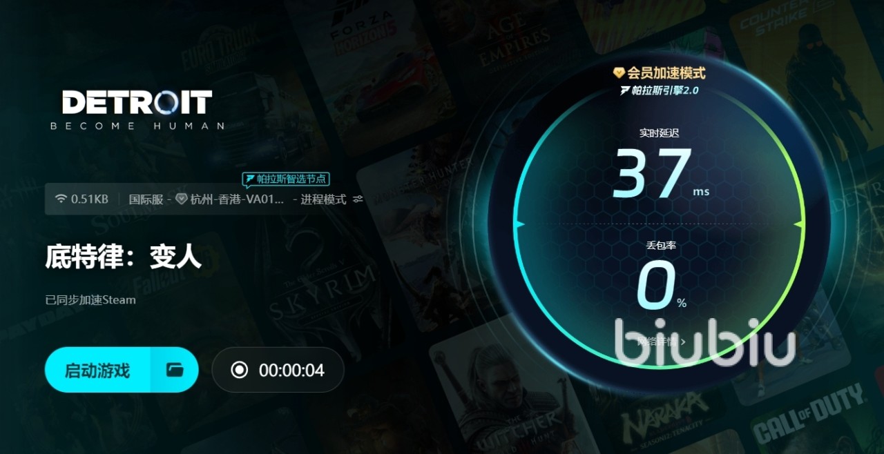 以上就是底特律变人卡顿掉帧有什么解决办法的分析,会出现卡顿掉帧的现象要么是客户端崩溃了要么是网络波动短时间内比较频繁,不管是基于什么样的情况,选择BIUBIU这样的加速器都算的上是一个不错的解决方式。