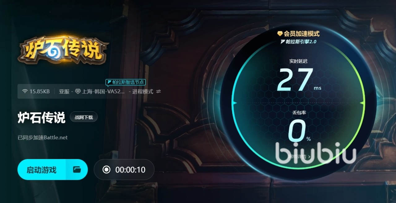 以上就是炉石加速器哪个好用的介绍,游戏新开放的内容让它又再度成为很多玩家最爱的游戏之一,让他们又重新燃起了曾经在游戏中的肆意对战的斗志,在启动游戏后如果不想在游戏过程中出现闪退或者崩溃的情况,可以先启动biubiu来加速然后再开启游戏的战斗。