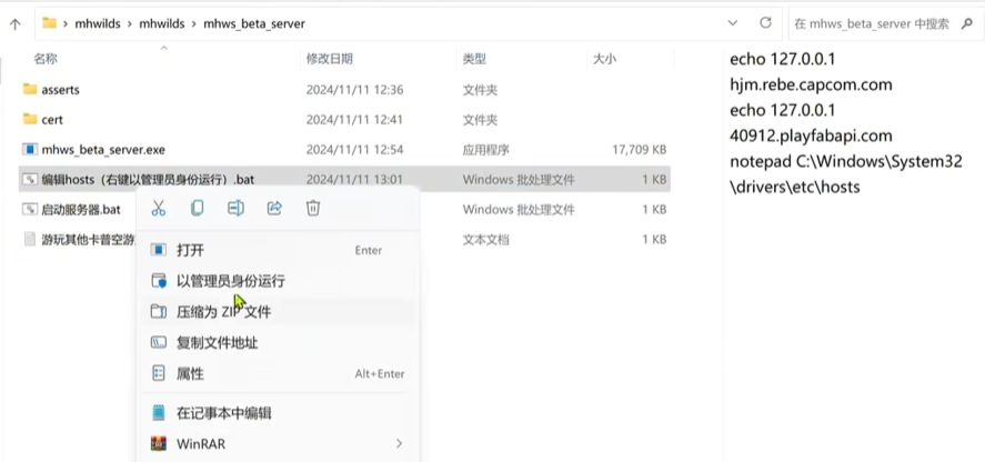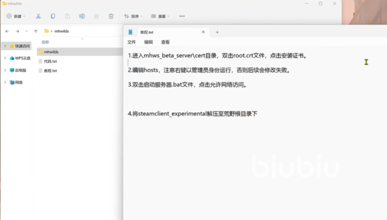 首先我们肯定是要下载游戏本包的,将其放在存储盘之后,就可以进行搭建操作了。下载一个mhws工具,首先我们需要进入mhws beta server\cert目录,然后找到root.crt文件进行双击,点击安装证书就好了。