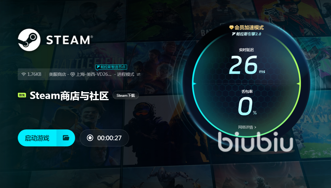 玩游戏的过程中出现卡顿闪退等情况,有多种原因,有些时候是因为服务器自身的缘故,例如同时在线玩家数量过多,服务器无法及时处理客户端发过来的数据信息,这样就会导致卡顿闪退,还有可能是因为自身的网络比较弱,或者是当前波动比较频繁,这些都会导致这样的情况发生。无论是哪一种情况,对于大多数人来说都是很难改变的,可以做的是,通过加速器来利用诸多科技进行优化,这样可以很大程度上避免这些问题的出现。在目前的防卡顿防掉线等加速器中,小编认为biubiu是非常出色的一款,上面链接大家可以直接点击去下载biubiu客户端完成安装,然后注册一个新账号,利用赠送的三小时会员时间直接就能打开使用了。