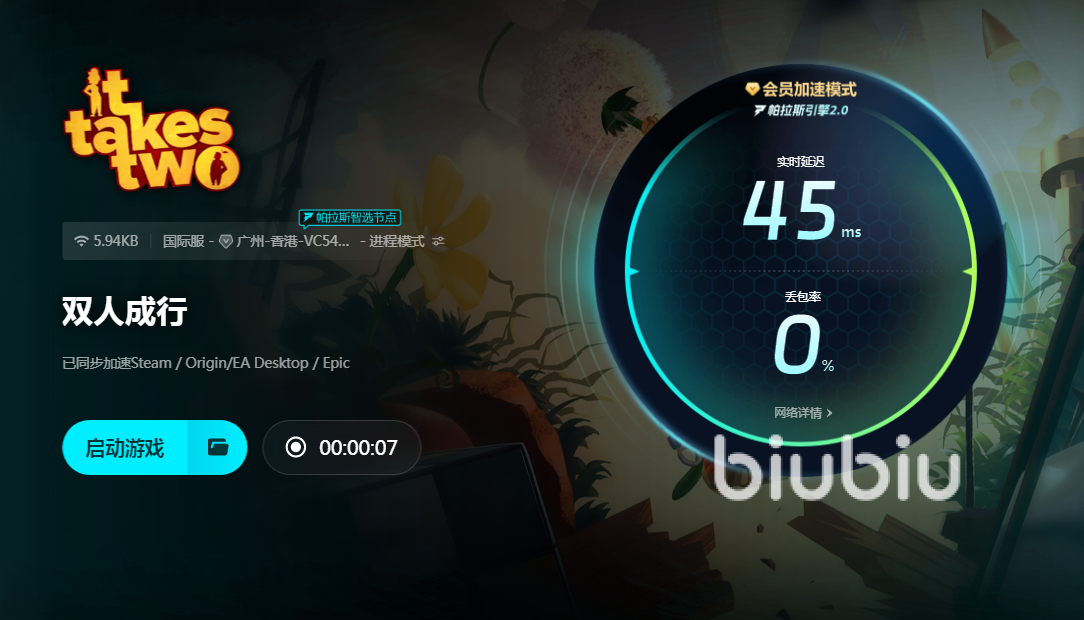 双人成行是现在深受大家喜欢的联机类游戏,它需要两名玩家一起合作,不断在游戏里闯关,同时欣赏到非常精彩而且有深度的剧情,是一款很适合在家庭或者是聚会的时候进行体验的休闲游戏。为了解决在双人过程中的闪退问题,小编推荐biubiu加速器来使用,这款加速软件操作简单性能优异,可以带来很好的网络优化效果。利用自身的诸多加速科技为游戏的运行提供各种保障。在加速时间方面,biubiu现在推出了兑换码活动,每个号都能用一次兑换码是【biubiu不卡顿】,这个兑换码可以直接兑换得到三天会员时间非常有价值。另外一项活动是新注册账号才能享受到的,注册完毕直接领三小时会员时间,也相当于给新用户带来了免费试用的福利。