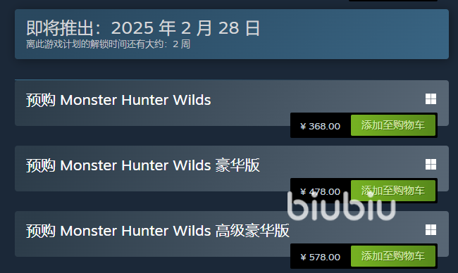 在蒸汽平台本作品一共有三个版本,分别为基础、豪华和高级豪华,而售价也和怪猎世界一样采用的368、478以及578,这在这类游戏中还是算比较贵的,而计划该作品将于2月28日正式发售,到时候提前预购的玩家可以直接在平台内提前安装,到时候开服直接登陆玩就可以了。