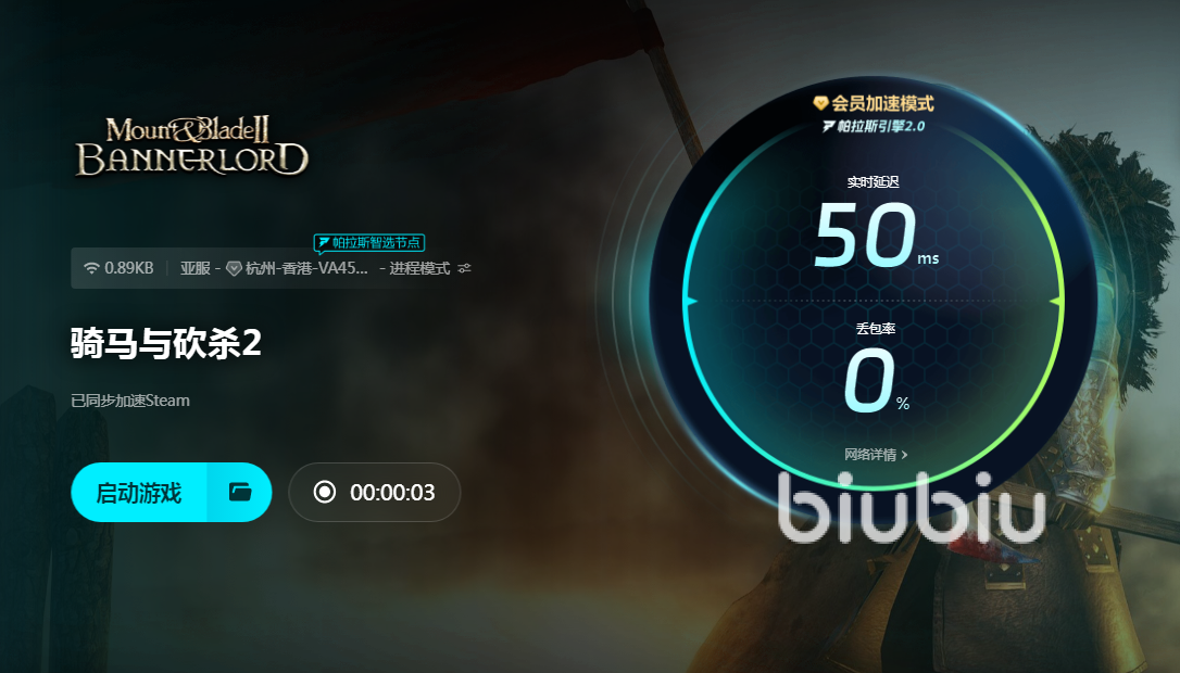在骑砍2的单人模式中,玩家通过创建角色体验战斗,自己动手进行策略经营,和在沙场中进行战斗,从小势力开始,利用外交、贸易等功能,不断扩大自身军团。再利用自定义战斗模式和其他等手段快速开始战斗,最终统一整片大陆,是一款周期非常长的游戏。但是在多人模式下,有着快速对战和自定义两种玩法,玩家之间的对抗以竞技为主,需要有灵活的反应和正确的攻击动作,才能击杀对手。因为游戏里数据非常多,所以很容易就出现卡顿问题。为了解决这一点,小编推荐使用biubiu加速器来打开游戏,这样能获得优化效果,减少延迟,降低卡顿。Biubiu说现在有两项重要福利一定要介绍给大家,第1项是每个号都能用兑换码【biubiu不卡顿】去兑换三天会员时间,当然只能换一次。另一项是新注册账号才能得到,注册完毕后直接领三小时会员时间。