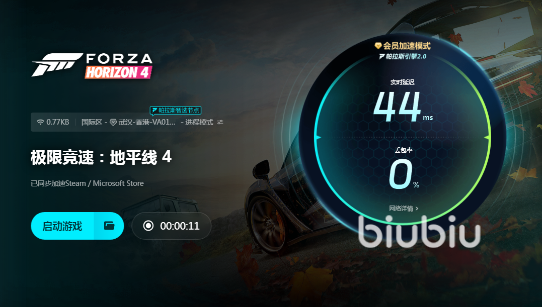 今天小编推荐给诸位的加速软件是biubiu,下载的链接就在上面,这款工具可以很好地解决在游戏运行中的掉帧卡顿等现象。这款地平线4有着制作非常真实的开放世界场景,还加入了季节变化系统,游戏里的车辆系统极为丰富,涵盖了多个不同的类型和级别。玩家可以在多种不同的模式中感受精彩赛车竞速所带来的乐趣。一旦出现掉帧的现象就会很影响整体体验感,有了biubiu之后就不用再担心了,下载完成biubiu的官方客户端安装之后,直接输入地平线4,就可以找到需要的游戏选项,然后再点击开启一键运行,接下来在加速页面中打开运行游戏客户端就可以了。后续不需要再进行任何操作,biubiu所具有的各种加速科技都是自动在后台运行的。
