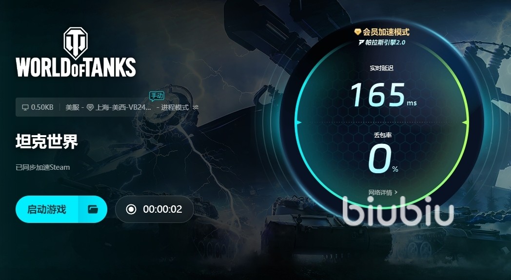 坦克世界这款游戏是支持多人共同参与的,我们可以在线匹配,也可以邀请好友共同联机组队。在对战的过程中,我们要使用各种各样的技能,这样有助于大家提升胜率。同时游戏也会拥有多个地图模板,玩家一定要利用地形的优势,这样也能够更好的战胜对手,虽然这款游戏对于电脑配置要求不是很高,但是由于他是多人在线体验的,还分为不同的区服,所以大家一定要具备良好的网速才能更好的参与竞技。这个时候小编就建议大家使用biubiu来进行加速,它是非常优质的加速软件,小伙伴们应该都听说过。
