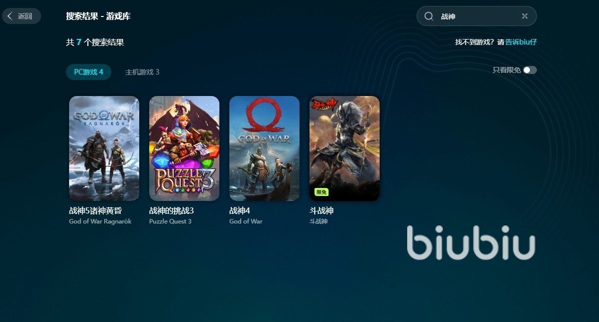 而且biubiu涵盖的游戏类型也是很广泛的,我们可以在这里面找到上万款不同类型的游戏,除了热门游戏之外,像一些冷门游戏这里也是应有尽有。而且部分游戏还是拥有限免活动的,限免池每隔一段时间都会进行更新,让玩家们都能免费畅玩更多热门游戏,有效的规避卡顿和高延迟等问题,让我们都能轻松的完成各种挑战。