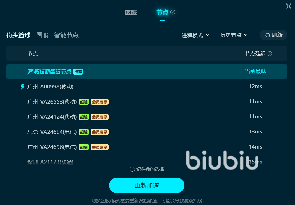 大家可以用biubiu加速器进行加速,它能给《街头篮球》搭建起一个稳如泰山、流畅到飞起的网络环境。它运用帕拉斯引擎2.0智能算法,精准地从众多线路中挑选出多条独享高速专线,同步发力,游戏延迟低到可以忽略不计。